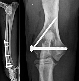Wie Frakturen entstehen, wie die Stressverteilung im Knochen vor Auftreten der Fraktur und nach Osteosynthese verläuft, und welche Implantate bei den jeweiligen Frakturtypen verwendet werden sollten, ist derzeit unser Forschungsschwerpunkt. Die Auswahl der Implantate basiert derzeit oft auf Erfahrungswerten und mechanischen Tests, ist aber in vielen Fällen klinisch noch nicht wissenschaftlich validiert. Mit unserem Forschungsprojekt soll diese Validierung anhand von Computersimulationen ermöglicht werden. Zu diesem Zweck werden verschiedenen Frakturtypen und Frakturlokalisationen an einem Computermodell nachgebildet und die klassischen Implantate simuliert. Bereiche verstärkter Beanspruchung werden sichtbar gemacht und Verbesserungsvorschläge können am Computer getestet werden. Langfristig soll eine Computersoftware erarbeitet werden, die den Kleintierchirurgen eine Entscheidungshilfe an die Hand gibt.