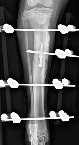 Mein Forschungsinteresse liegt in der Orthopädie. Bereits während meines chirurgischen Spezialistentrainings an der Universität Lüttich habe ich begonnen, mich mit den komplexen Anforderungen der Knochenheilung auseinander zu setzen. Die optimale Frakturheilung hängt von verschiedenen Faktoren ab, wie z.B. Weichteiltrauma, Art und Lokalisierung der Fraktur, Alter des Tieres etc. Dadurch ist jeder Knochenbruch sehr individuell und eine standardisierte Frakturversorgung ist nicht möglich oder ratsam. Stets gilt es, eine Balance zwischen ausreichender Stabilität und erforderlicher Elastizität zu schaffen und gleichzeitig die Anzahl und Art der Implantate anzupassen. |